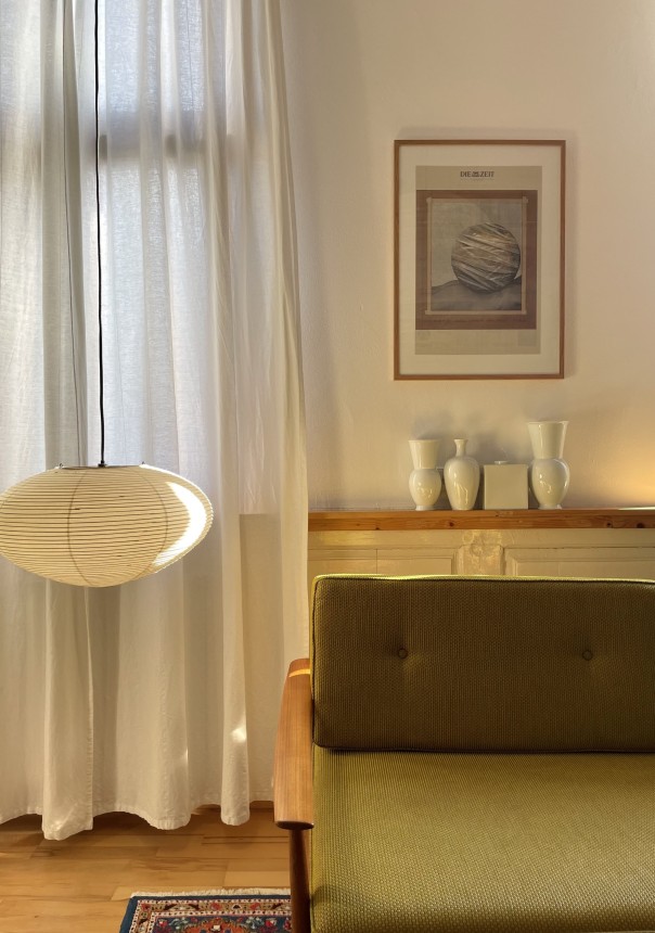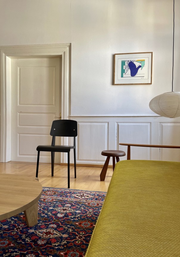 Mein absolutes Lieblings-Piece ist meine gigantische Akari Papierlampe von Isamu Noguchi, die einen stolzen Durchmesser von einem Meter hat. Manchmal sitze ich abends einfach nur unter ihr und lasse mich von ihrer Kraft hypnotisieren. Sie ist wie ein Lagerfeuer, das einem zum Nachdenken und In-Sich-Gehen anregt. Die Frage mit der Wunschliste beantworte ich dir nach meinem bald anstehenden Besuch im Prouvé-Haus in Nancy.