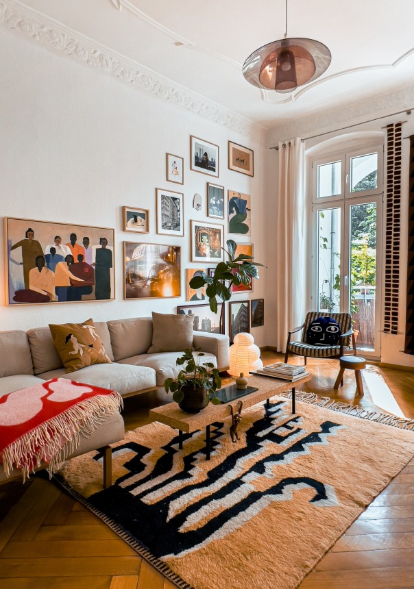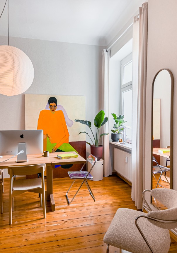 Das Haus befindet sich in der Mitte Berlins und wurde um 1900 gebaut. Das Apartment ist die "Bel Étage" mit 3,5 Meter hohen Decken und Holzböden, in einer charmanten, ruhigen Straße mit Blick auf den Park. Ich glaube, ich hatte einfach großes Glück, diese Wohnung zu finden. Ich habe mich damals verliebt, weil sie so geräumig und ruhig ist.