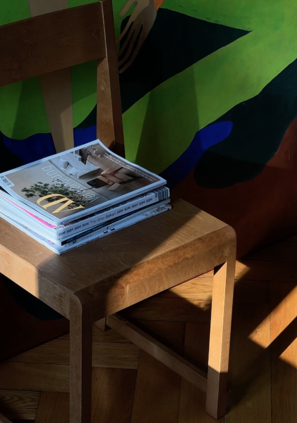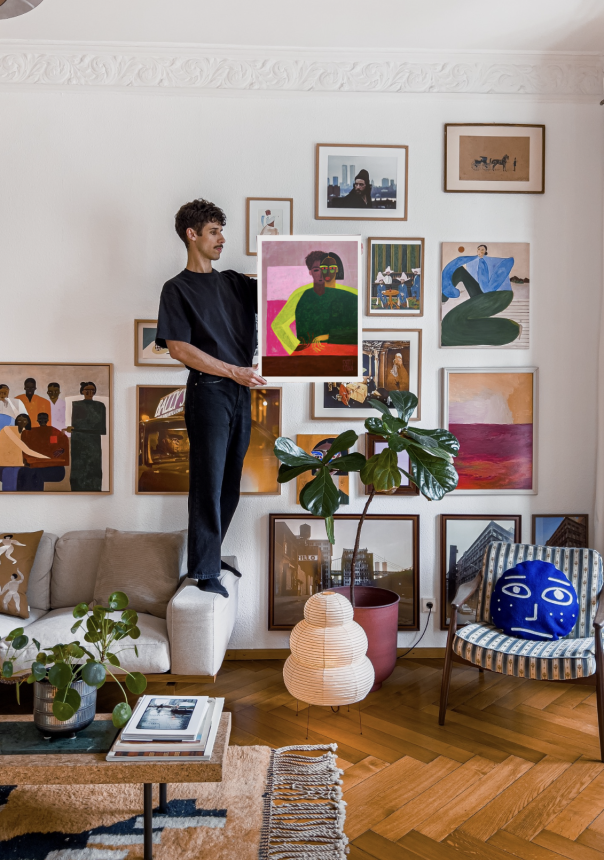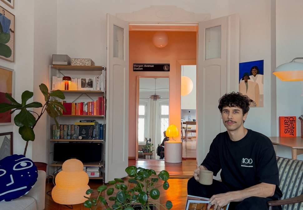 Hallo, ich bin Adam, ein Designer und Künstler aus Berlin (www.studio-adam.com & @didyouseeadam). Ich habe in New York City und Japan gelebt, was mich nachhaltig inspiriert und beeinflusst hat. Vor allem New York City hat immer einen besonderen Platz in meinem Herzen. Die Energie der Stadt zieht mich Jahr für Jahr wieder an. Ich versuche euch ein Einblick in meine Wohnung zu geben: Mein Wohnzimmer: Hier kann ich mich entspannen, lesen, tanzen und Filme auf einem Projektor ansehen. Es gibt auch einen Balkon mit vielen Pflanzen, einem Holzboden und einem Blick auf die grüne Bäume im nahegelegenen Park.