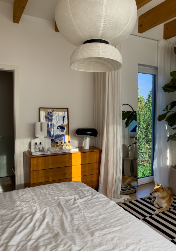 Ich würde sagen Mid Century oder Japandi greift einen recht großen Teil meines Stils ab. Natürlich mag ich hier und da auch einen Hauch Farbe und ausgefallenes Design. Gerade ein knalliges Blau hebt bei mir die Stimmung und ist schon so eine Art Markenzeichen geworden. Ich mag gerne natürliche Materialien in neutralen Tönen. Um mich wohlfühlen zu können, gehe ich gerne so vor, dass alle fünf Sinne bedient werden: