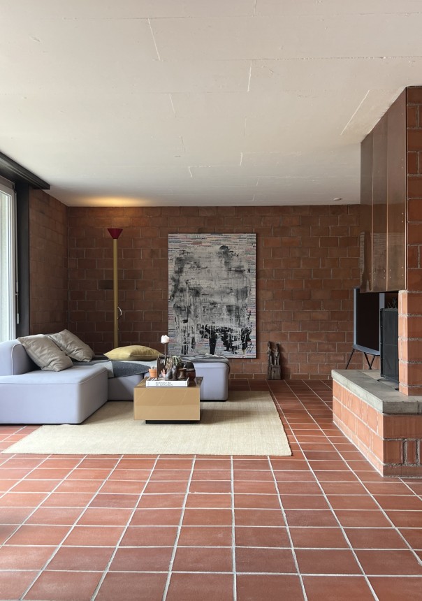 Ich hatte schon länger mit dem Gedanken an ein Eigenheim gespielt. Vor etwa drei oder vier Jahren durfte ich ein ähnliches Haus besichtigt. Überall Backstein, Terracotta Fliesen, Sichtbeton und grosse Fenster. Da wusste ich es – ich muss irgendwann genau in so einem Haus leben. Der Wunsch war geboren und so habe ich danach gesucht. Durch Covid hat sich die Immobilen Situation in der Schweiz drastisch verteuert und der Markt war leer an bezahlbaren Immobilien. Kurz bevor ich es vor einem Jahr aufgeben wollte, bin ich per Zufall über das Inserat gestoßen von meinem Mid-Century Bungalow. Es war Liebe auf den ersten Blick und ich habe alle Register gezogen, um den Zuschlag beim Kauf zu erhalten.