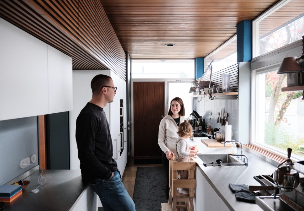 Kathi: Viele sind begeistert, manche finden aber auch die Räume im Untergeschoss recht klein. Da haben sie schon recht, aber die kennen eben nicht dieses außergewöhnliche Wohngefühl, dass Architekten wie die Gebrüder Lippert oder auch Le Corbusier zu vermitteln wussten. In einem Haus wie diesem verwischen die Grenzen zwischen drinnen und draußen. Wenn unsere Kinder einen solchen Garten und diese Nähe zur Natur genießen, dann brauchen sie kein Kinderzimmer von 30 Quadratmetern. Dieses Haus sorgt für intime Gemeinschaft und zugleich für viel Freiheit – perfekt für eine Familie wie unsere.