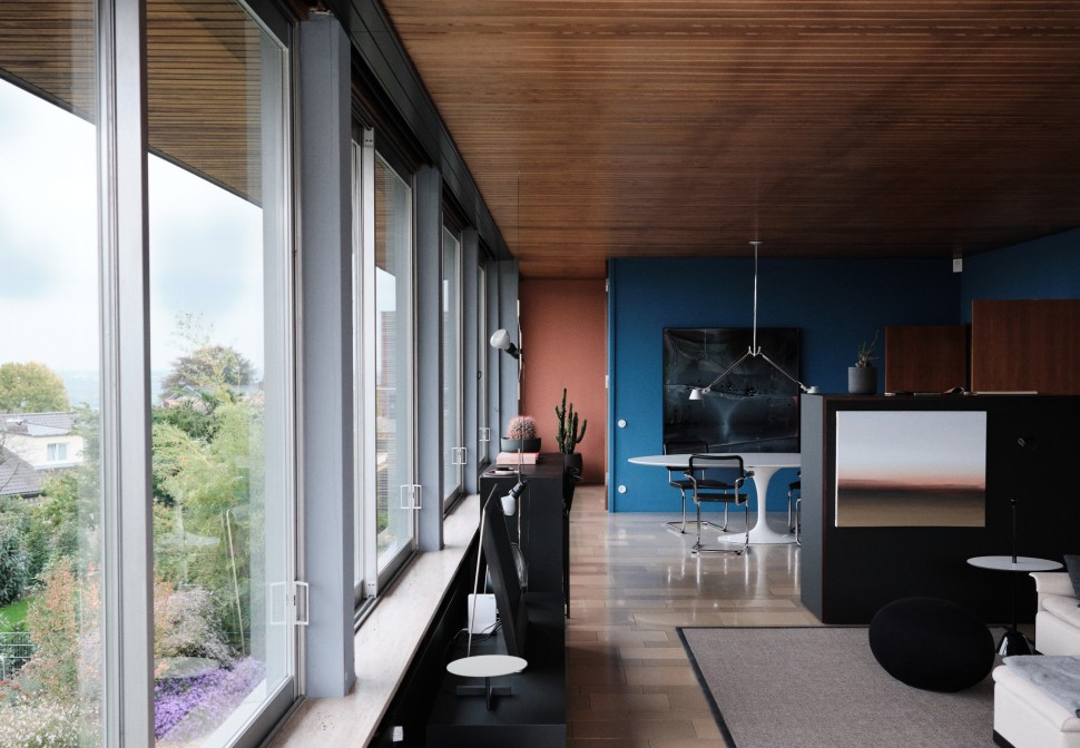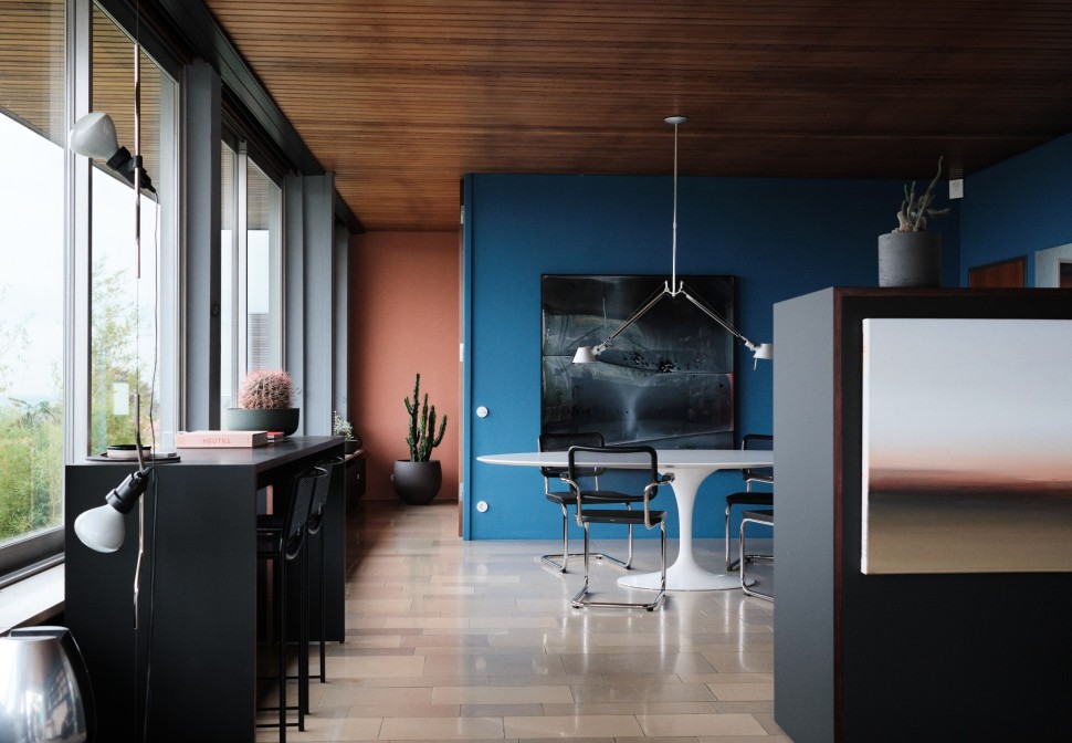 Felix: Die Elektrik und die Rohre waren nach 60 Jahren marode und mussten ersetzt werden. Was mich freut, ist, dass die Dachrenovierung zu einer richtigen Restauration wurde. Jetzt sieht alles wieder exakt so aus, wie es ursprünglich mal war. In den 1980er Jahren wurde da so manches verschandelt. Innen wie außen haben wir außerdem neue Farbakzente gesetzt. Um den Gesamtcharakter nicht zu stören und auch den Auflagen gerecht zu werden, haben wir uns dabei strikt an der Farbenlehre Le Corbusiers orientiert. Mit dem Ergebnis sind wir sehr zufrieden.