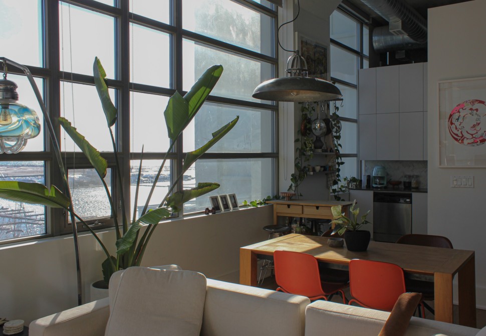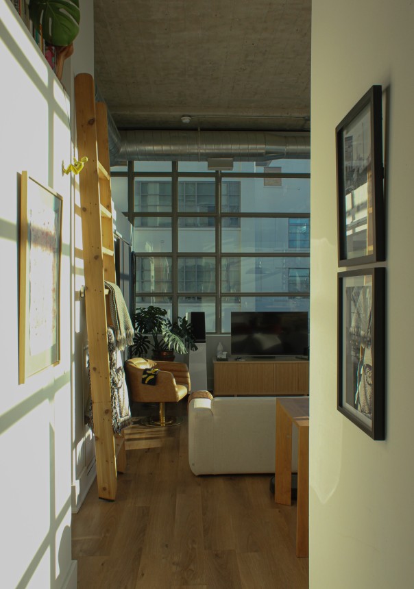 Die alten Industrierahmen der Fenster erzeugen erstaunliche Schatten in der Wohnung, was es viel interessanter macht, hier zu fotografieren. Von der Wohnung aus hat man einen Blick auf den Ontario-See und den städtischen Flughafen auf einer Insel neben uns. Ein weiterer Vorteil des Wohnens hier ist die Möglichkeit, kleine Flugzeuge beim Abflug von der Stadt zu beobachten, was sehr befreiend ist. Ganz zu schweigen von der Gelassenheit, die der Anblick des endlosen Sees vermittelt.