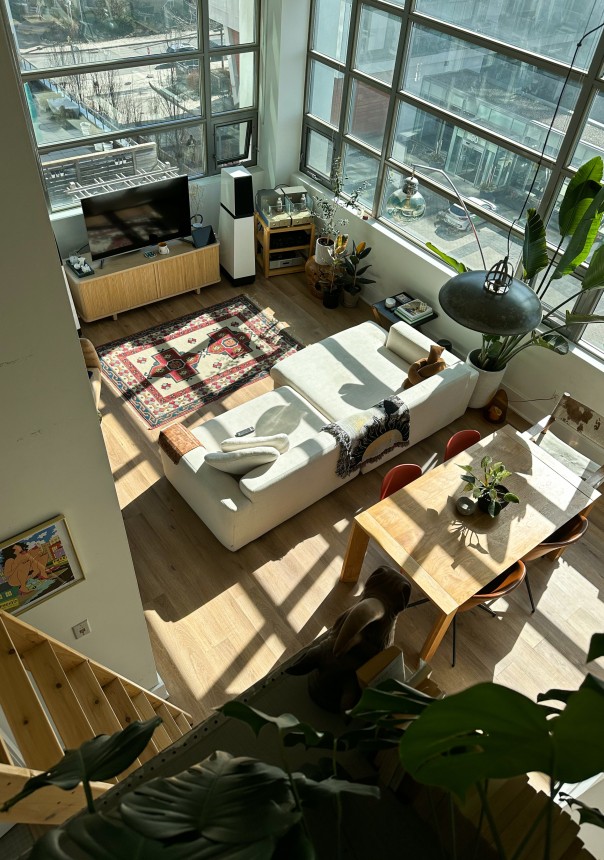 Wir kommen beide aus Istanbul, und sind zum Studieren nach Kanada gekommen. Wir arbeiten beide im Bereich der Technologieberatung und gehen nebenbei unserer Leidenschaft nach. Mert besitzt nebenbei ein Geschäft für High-End-Lautsprecher, was der Grund dafür ist, dass wir in unserer Wohnung eine tolle Audioanlage haben. Und ich konzentriere mich auf den Account von house.506 und darauf, mein Wissen in den Bereichen Innenarchitektur, Architektur und Kunst zu erweitern. Toronto ist aufgrund seiner multikulturellen und integrativen Natur sowie seiner blühenden kreativen Gemeinschaft ein großartiger Standort für uns. Die Stadt verfügt über ein dynamisches und junges Stadtzentrum, und die Menschen hier unterstützen kleine Unternehmen, so dass mehr Kreative ihre Träume verfolgen können. Obwohl die Winter hier hart sein können, haben wir das Glück, ein gemütliches Zuhause zu haben, das viel Sonne abbekommt.