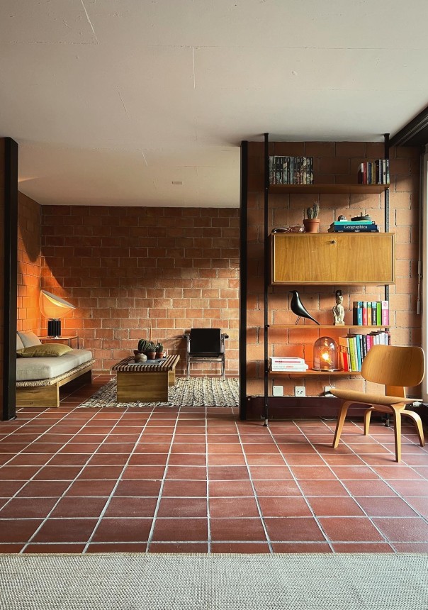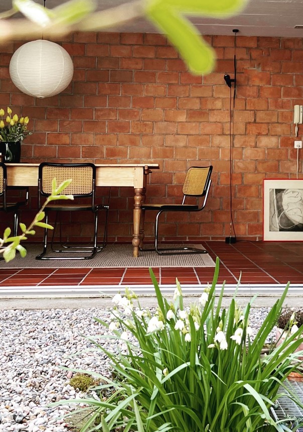 Ich hatte schon länger mit dem Gedanken an ein Eigenheim gespielt. Vor etwa drei oder vier Jahren durfte ich ein ähnliches Haus besichtigt. Überall Backstein, Terracotta Fliesen, Sichtbeton und grosse Fenster. Da wusste ich es – ich muss irgendwann genau in so einem Haus leben. Der Wunsch war geboren und so habe ich danach gesucht. Durch Covid hat sich die Immobilen Situation in der Schweiz drastisch verteuert und der Markt war leer an bezahlbaren Immobilien. Kurz bevor ich es vor einem Jahr aufgeben wollte, bin ich per Zufall über das Inserat gestoßen von meinem Mid-Century Bungalow. Es war Liebe auf den ersten Blick und ich habe alle Register gezogen, um den Zuschlag beim Kauf zu erhalten.