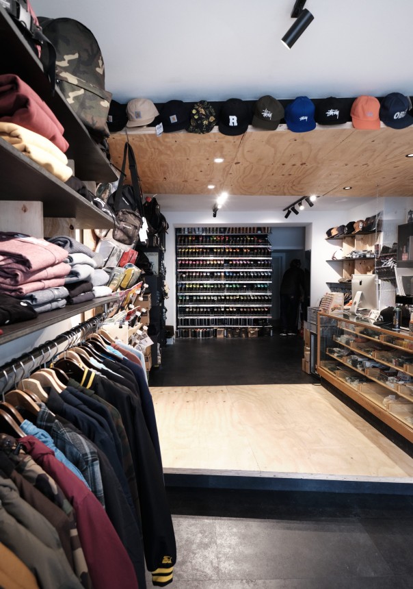 Neben meinem Flame und Jürgens Zuckerladen der dritte Plöck-Klassiker: der Skate Express von Harald Mathies. Er hat das Geschäft rund 30 Jahre betrieben. Der hatte in der Skater-Szene ein ähnliches Standing wie mein Laden in der Hip-Hop-Szene. Deswegen war es für mich auch Ehrensache, Boards mit ins Sortiment zu nehmen. Das Skaten überlasse ich lieber Theo, meinem sechsjährigen Sohn, aber zusammenschrauben kann ich die Dinger mittlerweile.