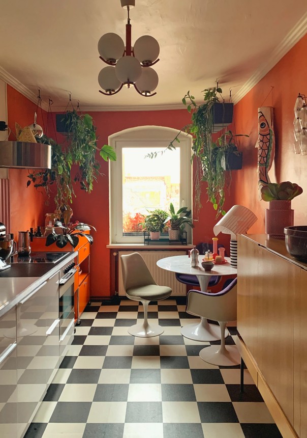 Tipps gibt es wahrscheinlich wie Sand am Meer. Ich denke, jede:r sollte sich erstmal fragen, welche Stimmung ein Raum vermitteln soll und zu welchem Zweck er dient. Ich hätte z.B. das Schlafzimmer nie in Orange gestrichen, die Farbe wäre mir viel zu anregend - weshalb sie in der Küche wiederum gut funktioniert. Ganz wichtig ist es, die Farben wirklich im Raum zu testen, in den hellsten und dunkelsten Regionen und mal eine Woche mit diesen Proben zu leben. Es muss nicht gleich eine gestrichene Decke sein, obwohl ich das sehr mag, sondern vielleicht eine farbige Wand und buntere Accessoire und Textilien, das kann schon sehr viel verändern. Wer dann ganz unsicher ist, kann mich vielleicht bald engagieren lacht, ich arbeite gerade an neuen beruflichen Plänen in Richtung Interior ...