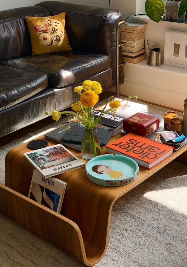 Bei der Einrichtung einer Wohnung ist es meiner Meinung nach sehr wichtig, den Raum zu berücksichtigen. Viele Leute versuchen, bestimmte Stücke in ihre Wohnung zu zwingen, auch wenn die Abmessungen oder der Maßstab nicht zu dem Raum passen. Wir versuchen, nur Stücke zu kaufen, die in unserem Raum auf verschiedene Weise verwendet werden können - zum Beispiel Esszimmerstühle, die auch als Lounge-Sessel neben der Couch oder als Beistelltische im Raum funktionieren. Wir haben eine Wunschliste mit Gegenständen, die wir gerne kaufen würden, aber wir wissen, dass sie in unserem jetzigen Raum nicht wirken würden und/oder schlicht unpraktisch wären.