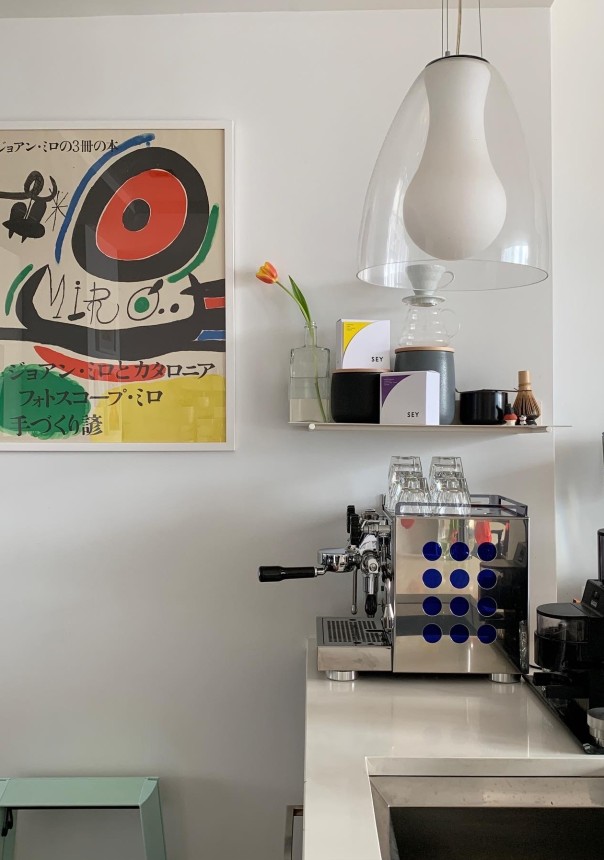 Mein derzeitiges Lieblingsstück ist wahrscheinlich unsere Jean Prouvé Potence Lampe von Vitra. Als wir nach einer Leuchte für unser Wohnzimmer suchten, wollten wir etwas, das sich in unserem Raum bewegen kann und keinen Platz auf dem Boden wegnimmt, also machten wir uns auf die Suche nach dem perfekten Stück und hatten das Glück, dieses Exemplar aus zweiter Hand zu einem tollen Preis zu finden.