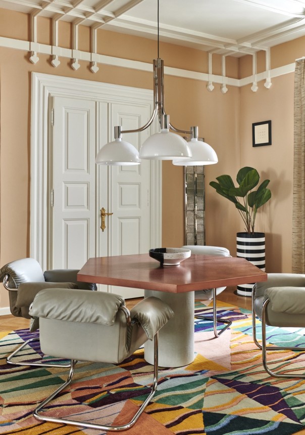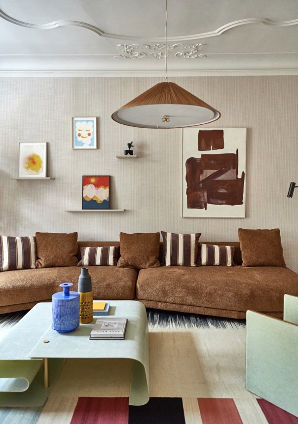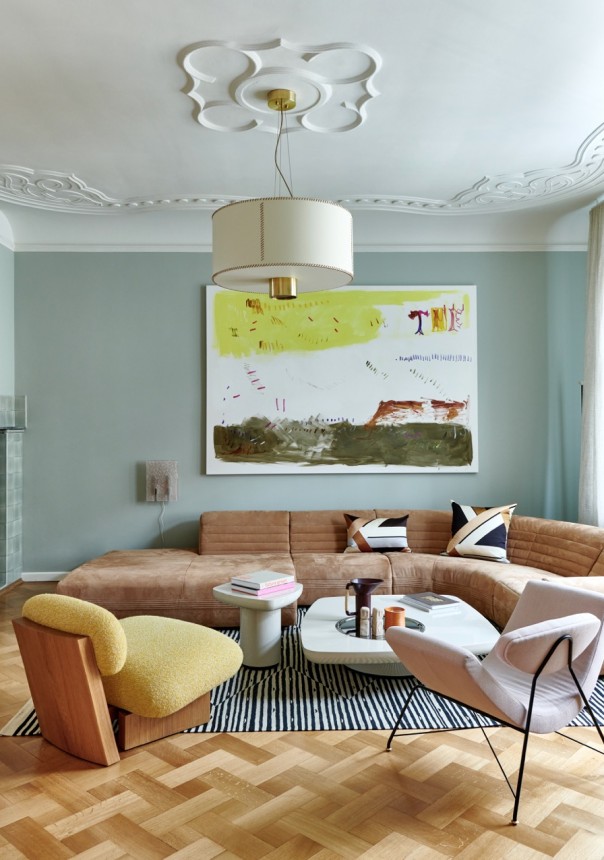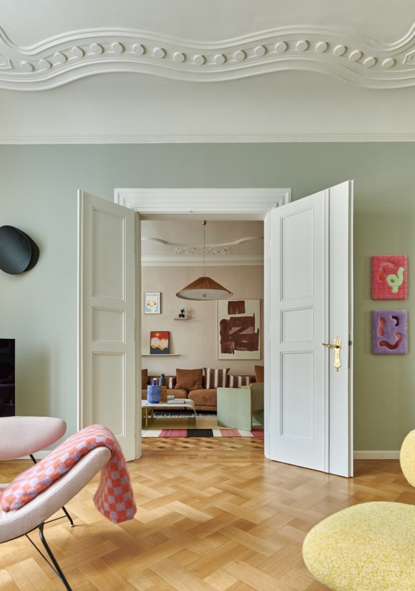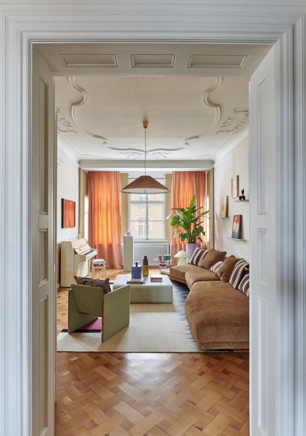 Ehrlich gesagt, hat es etwas gedauert, mich mit der Idee anzufreunden. Anfangs war ich unsicher, ob ich so viel Platz denn überhaupt brauche. Doch dann kam uns die Idee, die Wohnung als eine Art Showroom zu nutzen. Inspiriert von Konzepten aus London, Mailand oder Paris, wollte ich unbedingt meine eigene Interpretation eines „Living Showrooms“ schaffen und meine Designideen in der Wohnung ausleben und für Menschen zugänglich machen. Die Details dieser Altbauwohnung haben mich sofort begeistert. Besonders die hohen Decken und der kunstvolle Stuck, den ich bisher in dieser Form noch nie gesehen habe, haben mich fasziniert. Dieser einzigartige Altbaucharme hat mich dann regelrecht in seinen Bann gezogen und mich davon überzeugt, dass diese Wohnung für meine Idee optimal geeignet ist.