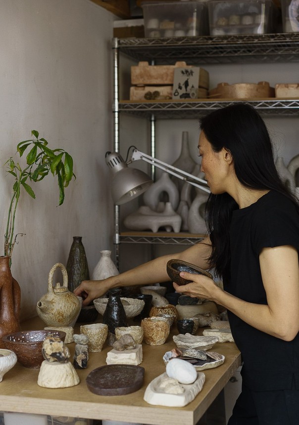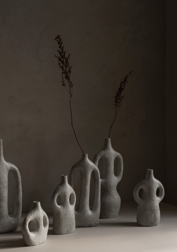 Ich verstehe unter "Wabi Sabi" die Wertschätzung der Schönheit von Dingen, und deren unvollkommene Qualität. In meiner eigenen Praxis beeinflusst es die Art und Weise, wie ich mit Materialien arbeite, um die dem Material innewohnenden Qualitäten und Eigenschaften zur Geltung kommen zu lassen. Ich arbeite zum Beispiel gerne mit grobkörnigem, mineralreichem Ton, der vielfältige Texturen und interessante und unerwartete Oberflächeneffekte in Form von Sprenkeln und Flecken bietet, die während des Brennvorgangs entstehen. Die Handarbeit selbst verleiht der Qualität des "Unvollkommenen" Ausdruck, was oft zu organischen Formen führt, die asymmetrisch oder unregelmäßig und daher sehr charaktervoll sein können.