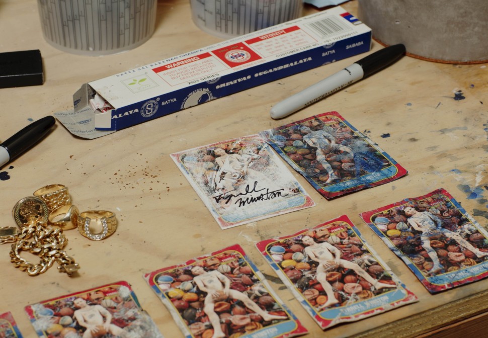 Sie müssen authentisch sein. Ich arbeite schon seit fast sieben Jahren mit ALD zusammen, damals kannte sie kaum jemand – geschweige denn mich. Wir haben immer eine Ästhetik geteilt und ich habe mich mit den Jungs von Anfang an gut verstanden. Derek Balarezo (Creative Director bei Aimé Leon Dore Anm.d.R) hat mich einmal begleitet, als ich unterwegs war, um Material auf den Straßen zu sammeln und kaputte Basketballnetze in New York auszutauschen. Wir hingen zusammen rum, haben uns ausgetauscht, Bier getrunken und billige Pizza gegessen. Unsere Beziehung ist über die Jahre gewachsen, eins führte zum anderen und so beauftragten sie einige Arbeiten für den Laden. Wir haben im letzten Sommer dann für meine Ausstellung „New Religion, True Religion, Bigger Than the Pope“ in Athen eine kleine Kollektion herausgebracht mit Schmuck, Caps und einer verrückten Lederjacke. Es macht einfach Spaß, mit Freunden zu arbeiten, die deine Vision verstehen.