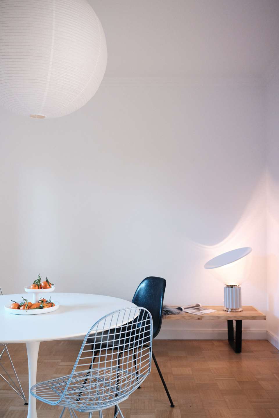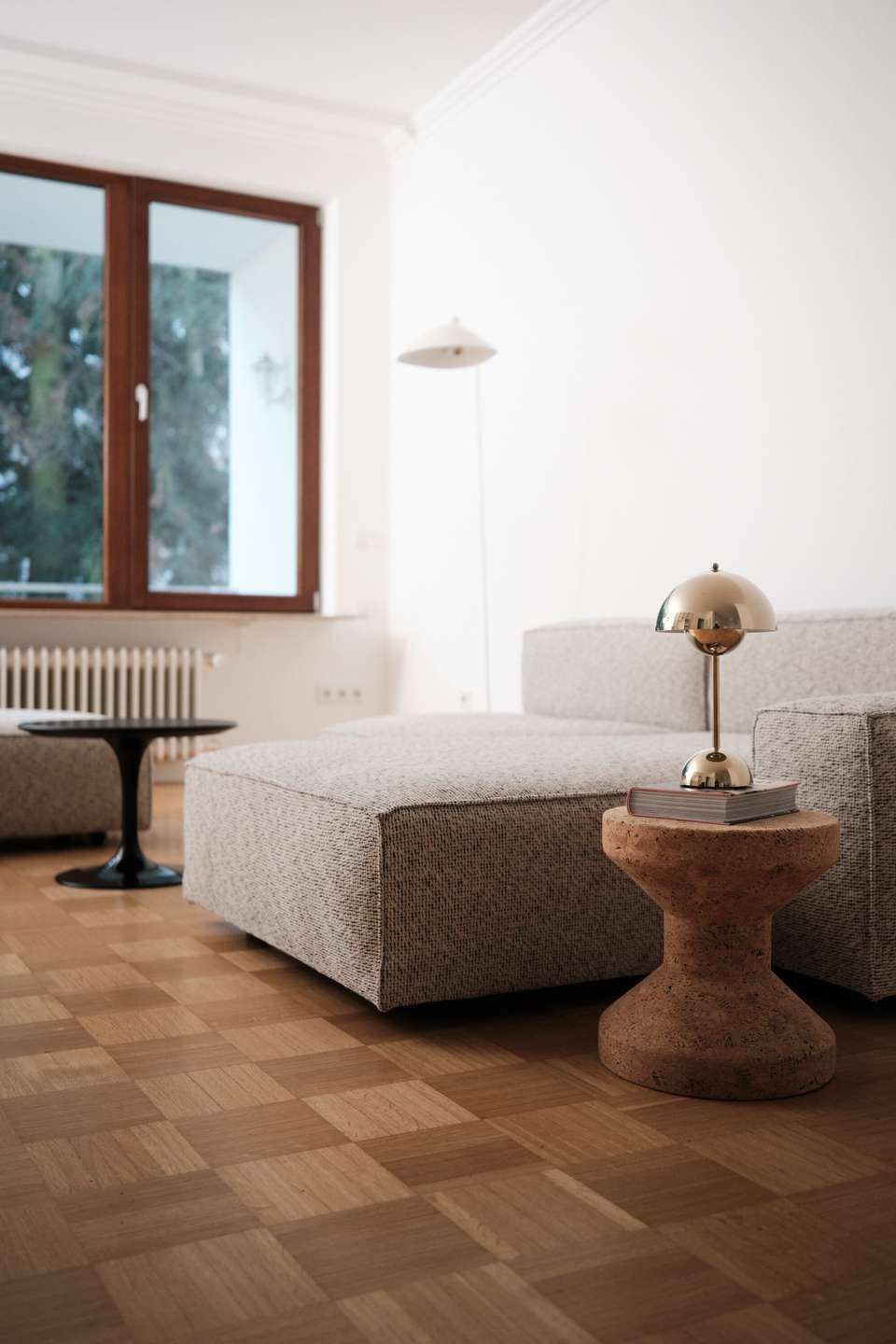 Auf dem Boden liegt Parkett im Schachbrett-Muster, das Bad und die Küche sind durch helle Fliesen neutral gestaltet. Die Einbauküche ist im Preis inbegriffen. Die Wohnung kann mit kleinen Schönheitskorrekturen sofort bezogen werden oder bietet, je nach Anspruch an die Innenausstattung, großes Potenzial durch den schönen Grundriss und die Aufteilung der Wohnfläche auf eine Ebene.