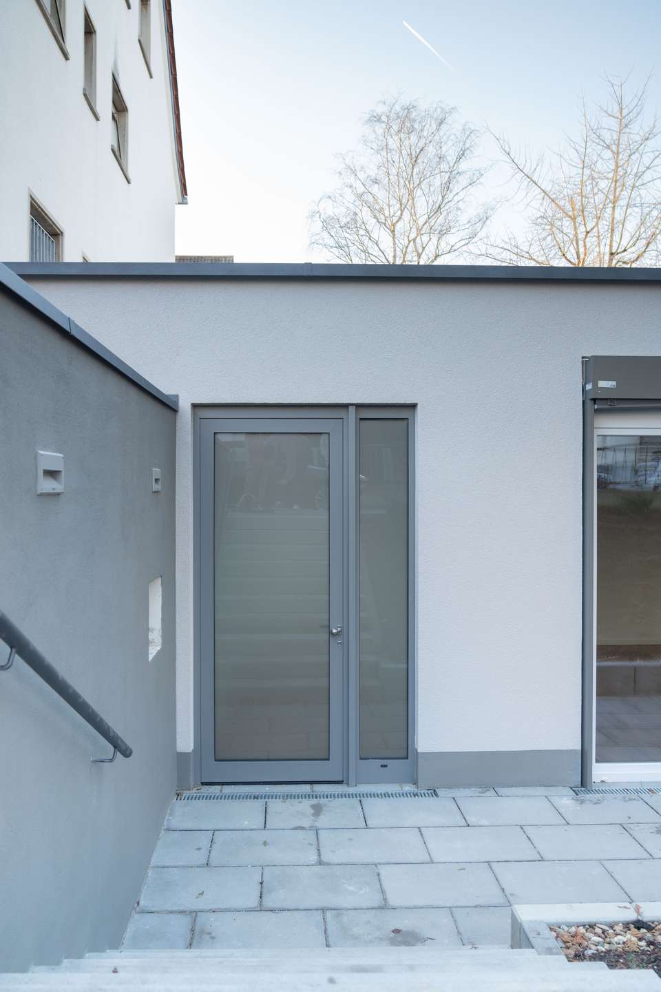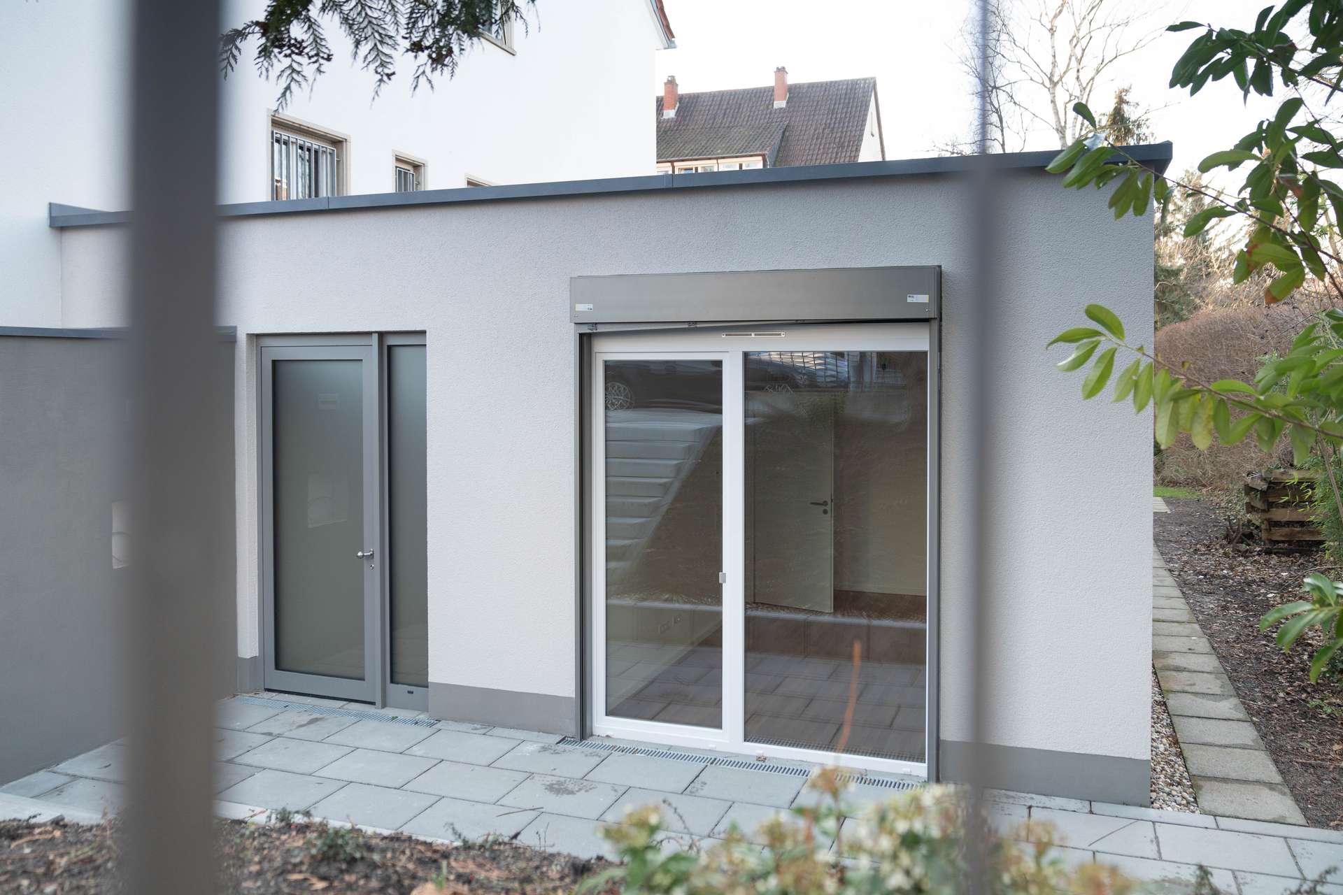 - Flachdach mit zwei großen Lichtkuppeln