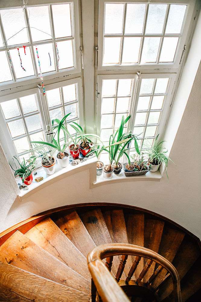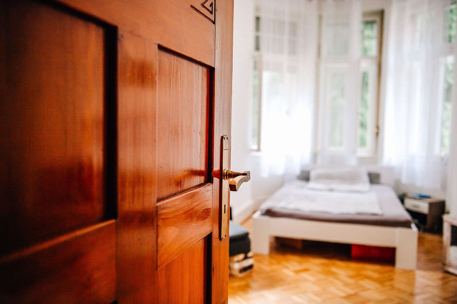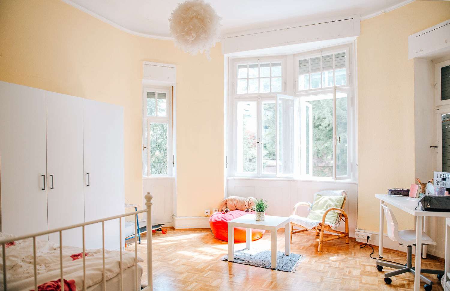 Klopf, klopf, klopf. Unter einem gläsernen Jugendstilvordach hängt ein gusseiserner Türklopfer am Holzportal, das ins Innere dieser Villa führt. Eine hölzerne Wendeltreppe verbindet die insgesamt vier Wohnungen die sich hier auf drei Etagen erstrecken. Die 5-ZKB-Wohnungen im Erdgeschoss und erstem Obergeschoss sind im Grundriss identisch und verfügen jeweils über eine Grundfläche von ca. 190 Quadratmetern. In beiden Wohnungen befinden sich zwei große Schlafzimmer mit Erker und das repräsentative Wohn- und Esszimmer auf der Ostseite des Gebäudes. Auf der gegenüberliegenden Flurseite, in Richtung Westen, liegen zwei weitere Schlafzimmer, von denen eines über einen eigenen Balkon mit Gartenblick verfügt, sowie Küche, Badezimmer und jeweils zwei Gäste-WCs.
