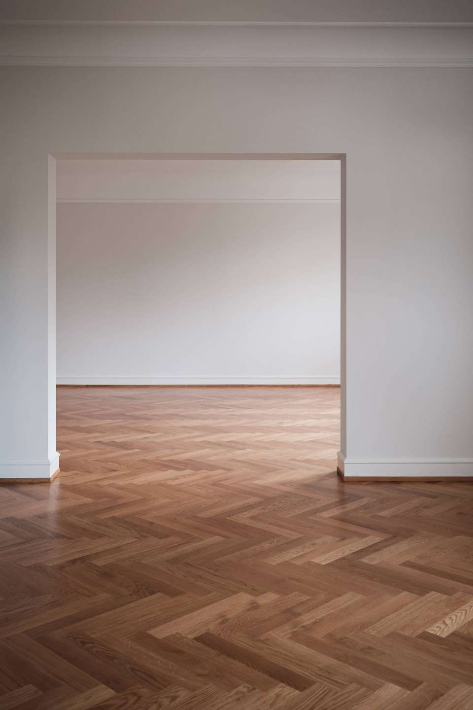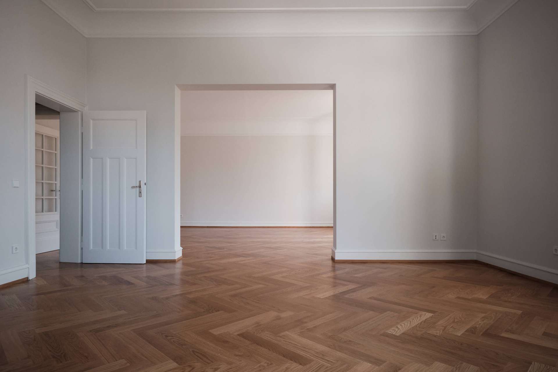 -Durchgehend verlegter Fischgrätparkett in allen Räumen außer in den Bädern