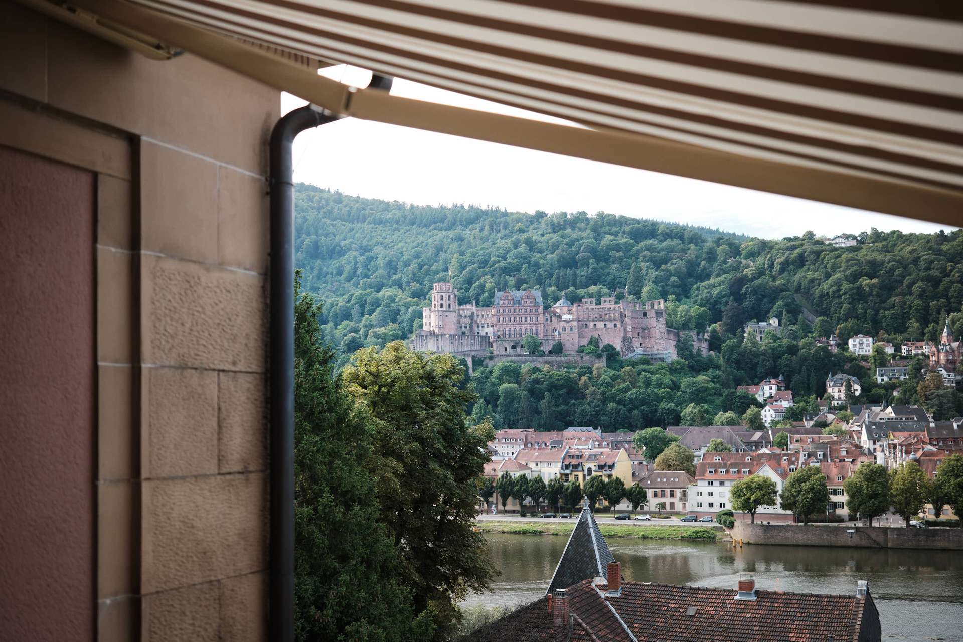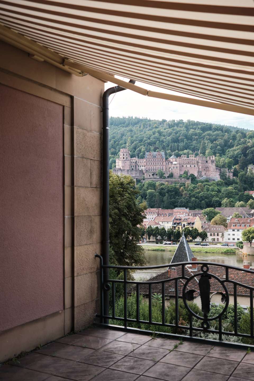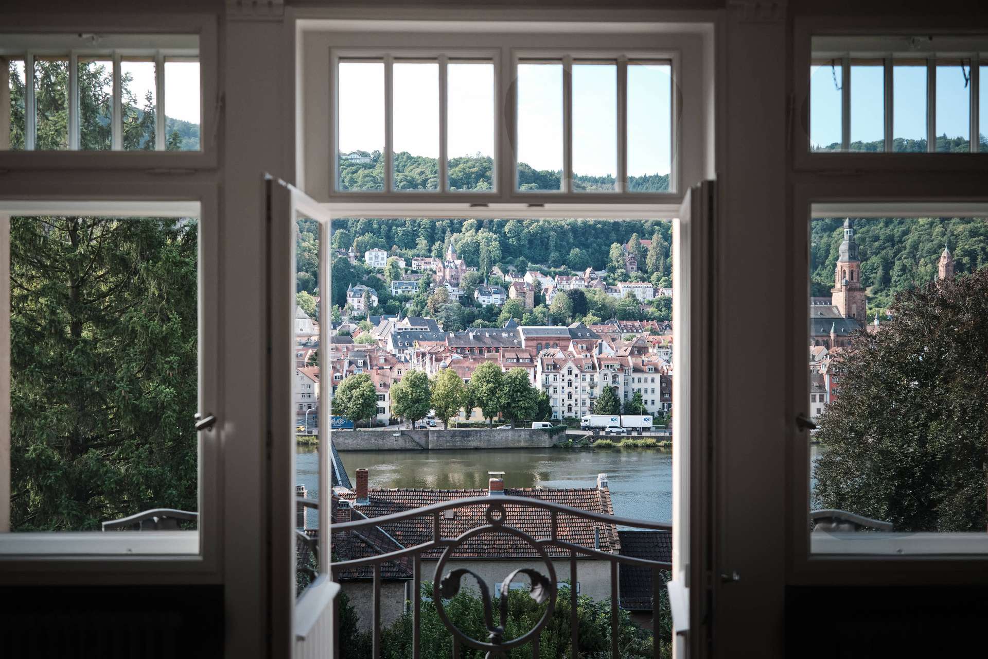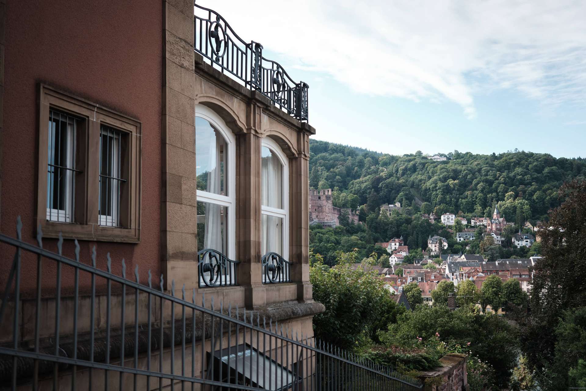Diese außergewöhnliche Altbauwohnung liegt im ersten Obergeschoss eines ruhigen Drei-Parteien-Hauses am Hang von Neuenheim. Die Lage: erhöht, mit freiem Blick über den Neckar, auf das Heidelberger Schloss, die Altstadt und den Königstuhl – und dabei überraschend ruhig. Kein Durchgangsverkehr, reine Anwohnerstraße.
