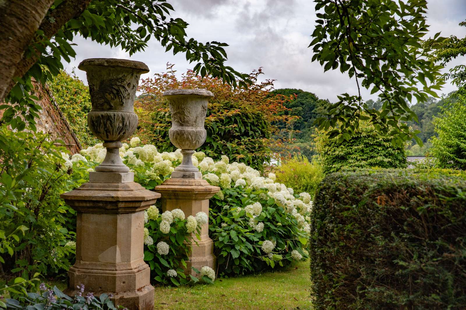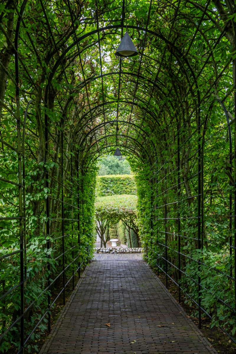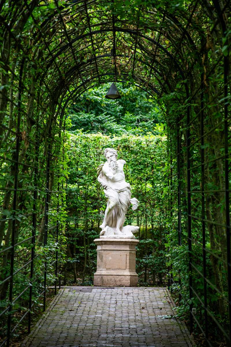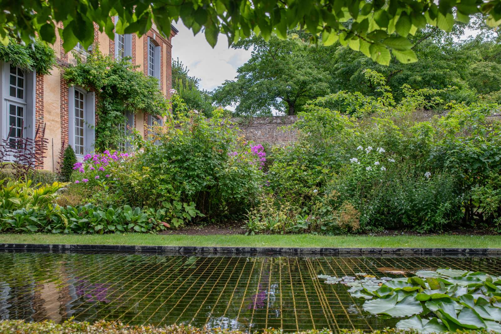 Die beiden Gästehäuser, zusammen rund 230 m² groß, fügen sich nahtlos in das Ensemble ein: das erste modern, offen und lichtbetont; das zweite klassisch, gemütlich und elegant. Den Rahmen bildet der Garten von Jacques Wirtz – ein Gesamtkunstwerk aus organischen Formen, streng geschnittenen Hecken, Wasserflächen und geschützten Ruheplätzen, das Natur und Architektur kunstvoll miteinander verschmilzt.