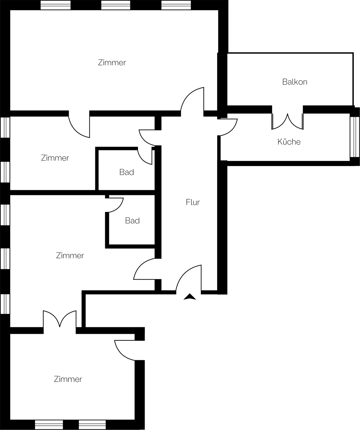 Die Erschließung erfolgt bequem über den Aufzug. Hinter der Wohnungseingangstür öffnet sich der zentrale Flur, der als verbindende Achse dient.