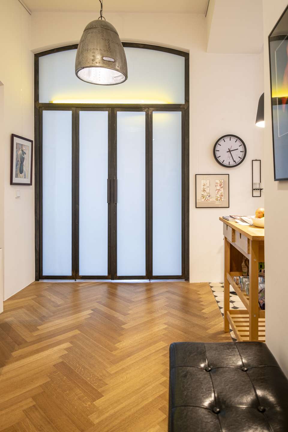 - Schwarze Sprossen-Flügeltür als zonierendes Element