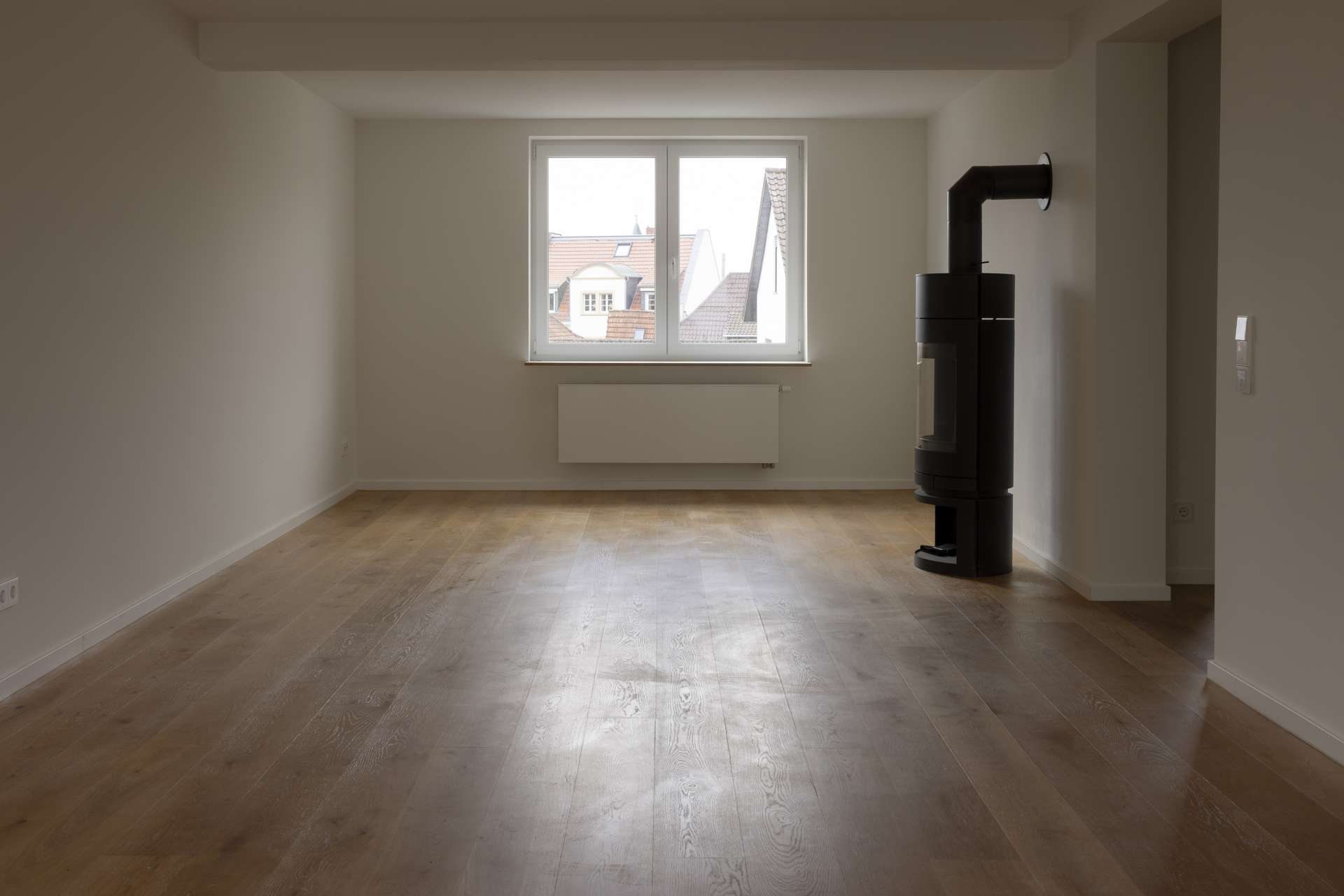 Die Wohnung ist mit Eichenparkett, dreifach verglasten Fenstern und elektrischen Rollläden ausgestattet. Sie erfüllt den KfW-75-Standard und wird über eine Pelletheizung beheizt. Ein Kellerabteil gehört zur Wohnung. Parkmöglichkeiten bestehen in den umliegenden Straßen mit Anwohnerparkausweis. Die Wohnung ist ab dem 1. Februar bezugsfrei und kann für drei Jahre oder länger angemietet werden. Sie bietet modernes, helles Wohnen in ruhiger und begehrter Lage.