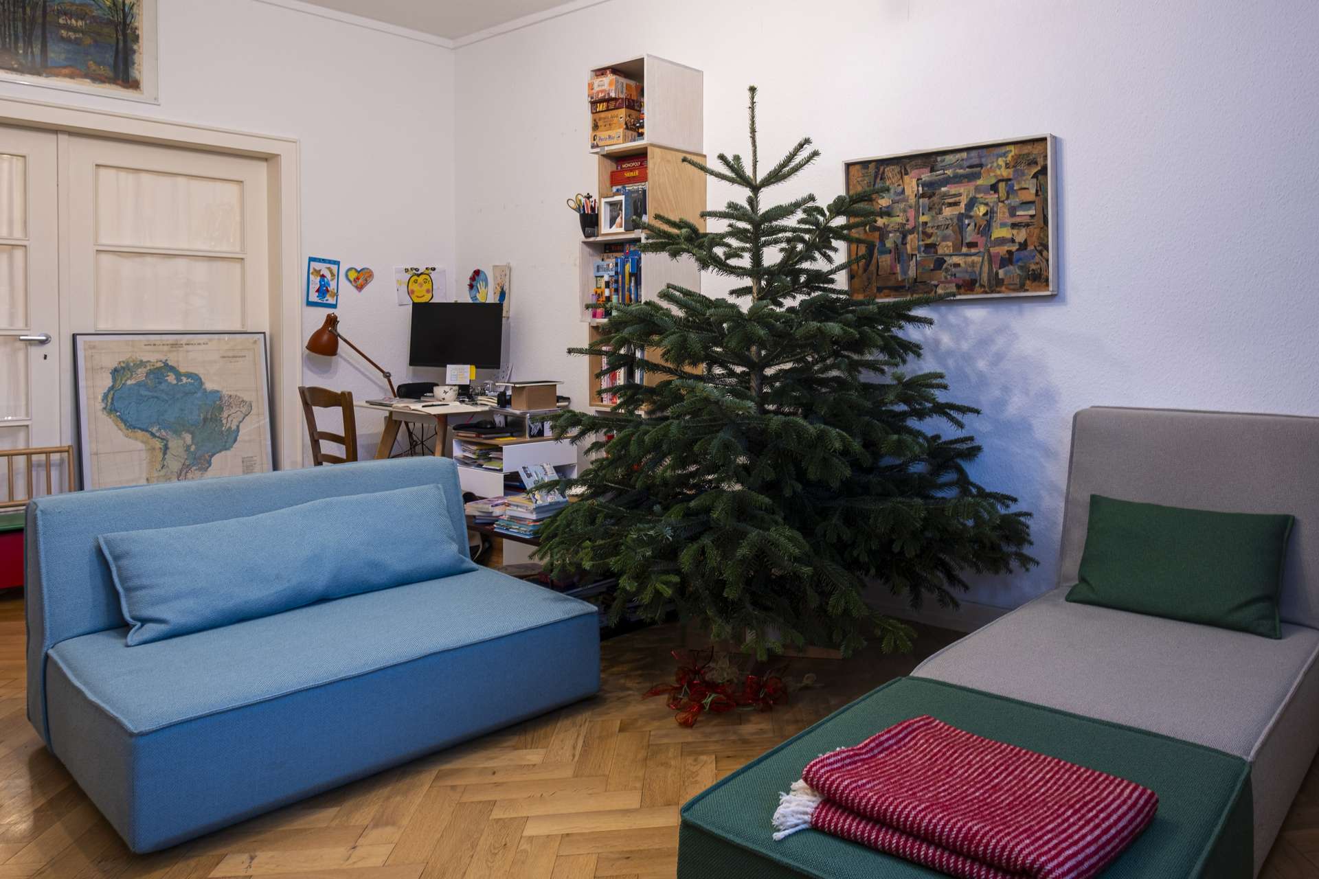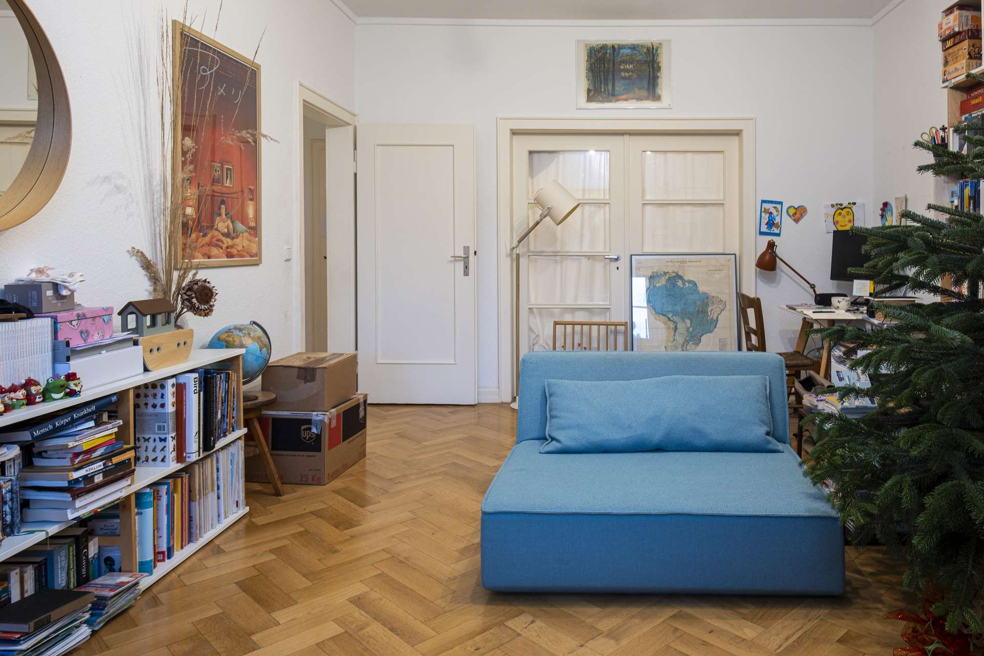 Am Ende des Flurs liegt das Kinderzimmer, das auch flexibel genutzt werden kann. Vom Kinderzimmer führt eine Flügeltür in das Wohnzimmer, die bei Bedarf geschlos...